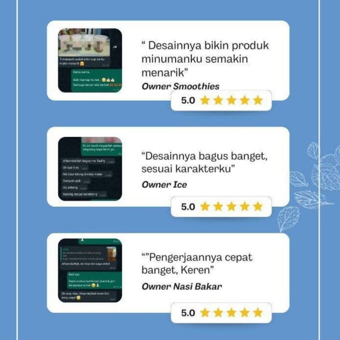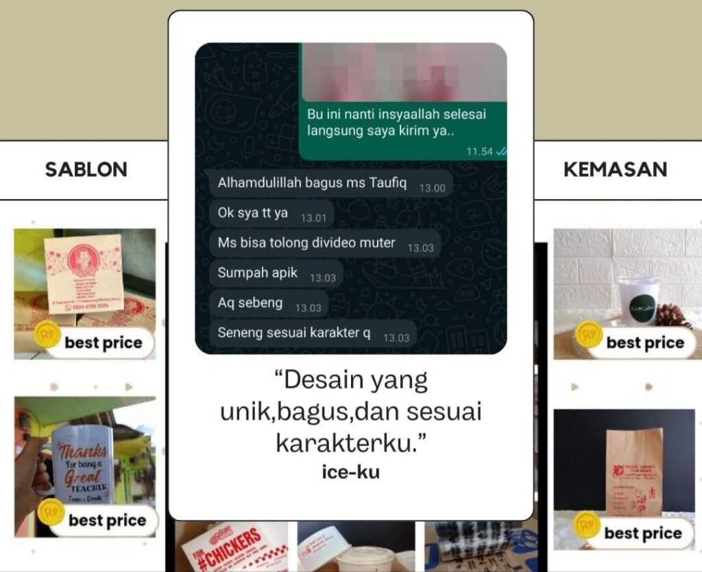 SOLUSI TERBAIK CETAK KEMASAN SELENGKAPNYA CUSTOMER TELAH PERCAYA KEPADA KAMI HUBUNGI KAMI CETAK KEMASAN 0 BRAND 0 KENAPA CETAK DI KAMI BERPENGALAMANBERKUALITASHARGA KOMPETITIFPROSES CEPATPENGIRIMANTERPERCAYA SUPPORT KAMI 1. GRATIS DESAIN CUSTOM2. GRATIS KONSULTASI3. GARANSI SABLON4. GRATIS ONGKIR PRODUK KAMI SELENGKAPNYA TESTIMONIAL